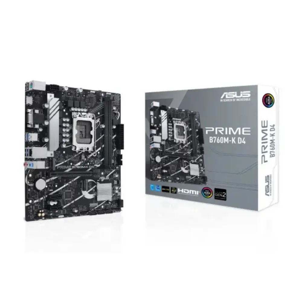 Asus Prime B760M-K D4 LGA 1700 soket uyumlu bir anakarttır ve Intel 13. nesil Core işlemcilerle uyumludur. Micro-ATX form faktörüyle kompakt bir yapı sunan bu anakart, DDR4 bellek desteğiyle yüksek performans sağlar. PCIe 4.0 desteği ile hızlı veri aktarımı ve genişletilebilirlik imkanı sunar. Dual M.2 yuvaları ile hızlı depolama çözümleri sağlarken, SATA 6Gb/s ile ek depolama cihazları bağlayabilirsiniz. USB 3.2 Gen 2 desteği ile hızlı veri transferi sağlar. Ayrıca, Realtek ALC897 ses chipi ile kaliteli ses deneyimi sunar ve AI Noise-Canceling mikrofon teknolojisi ile sesli iletişimi netleştirir. SafeSlot teknolojisi ile güçlendirilmiş PCIe yuvası ve LAN Guard ile güvenli ağ bağlantısı sağlanır.